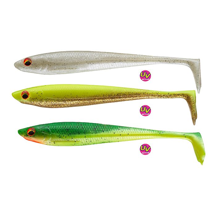 Den fängigen und beliebten original DAIWA DuckFin Shad bieten wir auch als fängige Farbsortimente. In Zusammenarbeit mit unseren Team-Anglern haben wir die Farbkombinationen ausgewählt, die in der Regel immer punkten – das Nature Set für klare Gewässer und schwierige Tage, das UV Set für trübes Wasser und Reaction-Strikes und das UV & Nature Set für alle Fälle. Ohne Phthalate!