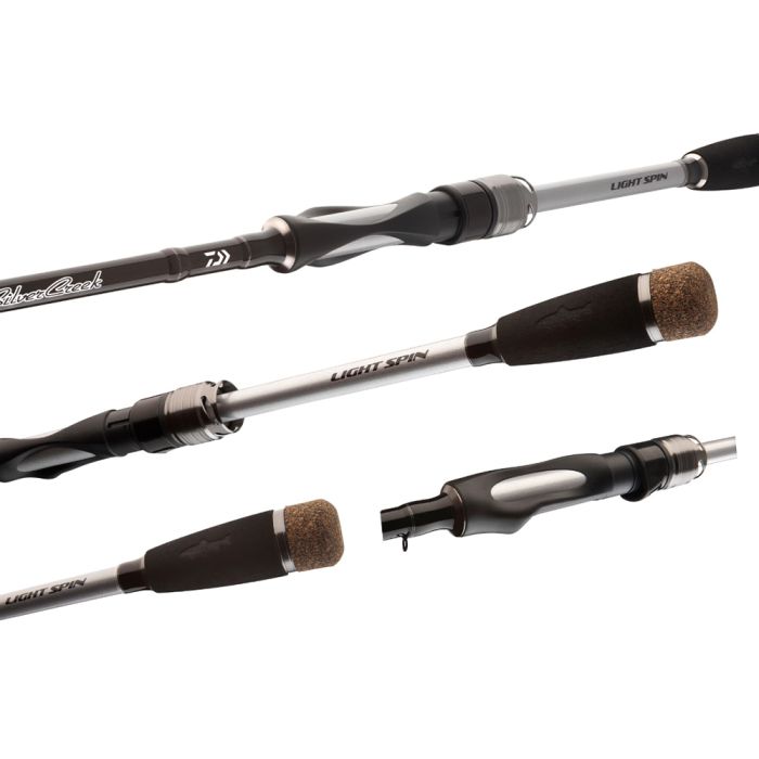 Die Silver Creek Light Spinnruten ergänzen die sehr beliebten UL Modelle um vier Ruten mit etwas kräftigerer eingespleißter Vollkohlefaserspitze. Die Vollkohlefaserspitze ist unter normalen Angelbedingungen nahezu unzerstörbar und sorgt gemeinsam mit dem kräftigen Rückgrat des HMC+ Blanks für gute Wurfweiten. Ideal für Gummifische und Wobbler von 5-10cm.
