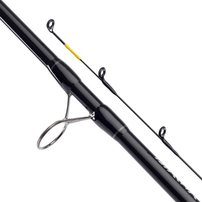 Daiwa Spectron Commercial Ultra Quiver Rod, The Daiwa Spectron Commercial Ultra Quiver Rod emerges as a must-have for discerning UK anglers, combining cutting-edge technology with precision engineering. This rod is tailored for those who demand excellence in their angling equipment, whether they are seasoned professionals or enthusiastic amateurs. Key to its appeal are the MTQ quivers, available in 1.0Oz and 1.5Oz BG. These quivers offer unparalleled sensitivity, allowing for an immediate response to even the most subtle of bites. This sensitivity is essential for commercial fishing, where the difference between a successful catch and a near-miss often lies in the split-second reaction to a fish's nibble. The HVF nanoplus technology in the rod construction marks a significant advancement in fishing rod materials. By incorporating high volume fibre at the nano-level, Daiwa has achieved a rod that is both lighter and stronger. This technology not only reduces arm fatigue during long fishing sessions but also enhances the rod's responsiveness, giving anglers a more direct connection to their line and lure. Another standout feature is the V-Joint Alpha, a testament to Daiwa's commitment to seamless rod action and durability. This joint technology ensures a smooth curve under stress, reducing the risk of weak spots and providing a consistent action throughout the rod. It's particularly beneficial when playing larger fish, ensuring that the rod can withstand the rigours of a challenging fight. The inclusion of the exclusive Daiwa Air Sensor reel seat is a noteworthy addition. It provides a secure and comfortable grip on the reel, reducing slippage and improving control. This feature is especially important in wet conditions, ensuring that anglers maintain a firm hold on their gear at all times. SeaGuide TDG guides are another critical component. These guides are designed to reduce line friction, allowing for smoother casts and reducing the wear on your line. They are robust enough to handle heavier lines and powerful casts, making them suitable for a variety of fishing conditions. The slim profile of the rod, combined with softer actions, offers a more refined and delicate approach to angling. This design allows for precise casting and is particularly effective when targeting smaller species or fishing in waters where finesse is key. The hard EVA handle with Armlock enhances comfort and control. This durable material is resistant to wear and tear, ensuring the rod maintains its quality over time. The Armlock feature allows for a more ergonomic grip, reducing strain on the wrist and forearm. Megatop QTs on Q models provide an added level of sensitivity and responsiveness. This feature is particularly useful for detecting shy bites, ensuring that anglers don't miss any opportunity for a catch. Finally, the inclusion of a hook keeper is a thoughtful addition. It provides a convenient spot to secure your hook when the rod is not in use, protecting the rod, line, and anglers from accidental snags or injuries.