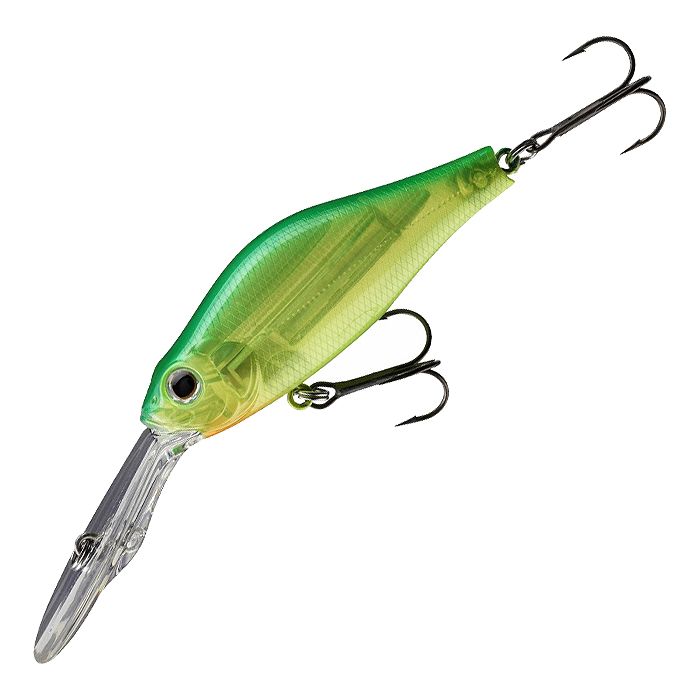 Der 68mm Mega Scouter ist ein sehr aktiv laufender, schwimmender Wobbler mit großer Tauchschaufel, der mit kurzen, hektischen Wobbelbewegungen sehr schnell auf Tiefe geht. Die Rasseln im Inneren senden starke Schwingungen und Frequenzen aus, die man beim Einholen bis in die Rute spürt. Die Geräusche aktivieren in der Regel auch lethargische Raubfische und steigern die Bissfrequenz. Die Gewichte im Inneren des Körpers sind so austariert, dass bei einem kurzen, kräftigen Schlag der Rute das Tungsten-Hauptgewicht nach vorne rollt und so einen noch steileren Tauchwinkel ermöglicht um noch schneller auf Tiefe zu kommen.