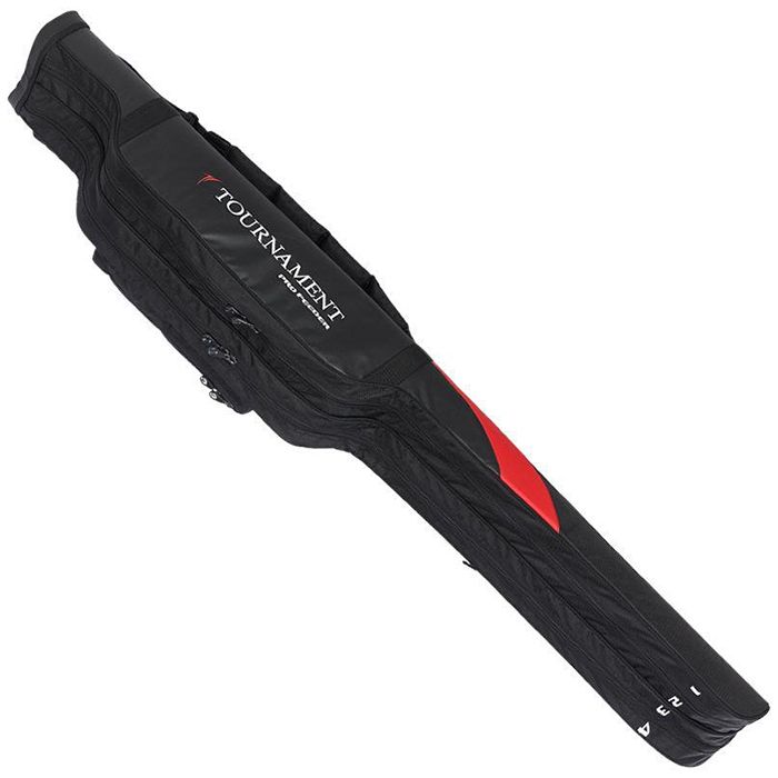 Diese Tournament 2+2 Feeder Rutentasche von Daiwa bietet viel Platz für die Positionierung Ihrer Ruten mit Rollen, sowie für Tackleboxen und Zubehör in den Außentaschen.