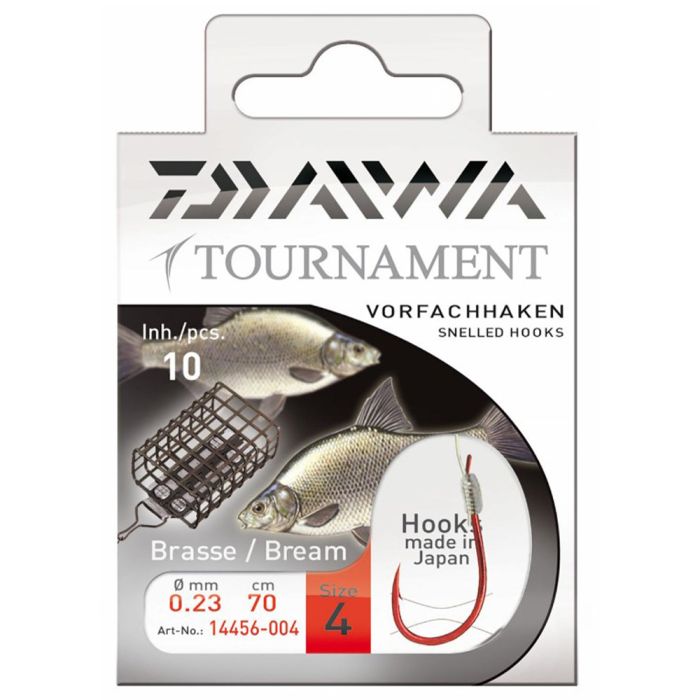 Mit den Tournament Haken bieten wir Ihnen ein komplettes Programm an Vorfachhaken aus Japan. Unser Augenmerk gilt hier ganz klar der Sicherung unserer hohen Qualitäts-Standards – jeder gebundene Haken wird individuell auf Zug-und Reißfestigkeit überprüft. Als Vorfachmaterial kommen nur hochwertige, japanische Materialien zur Verwendung. Ein echtes Premium-Produkt aus dem Hause DAIWA!
