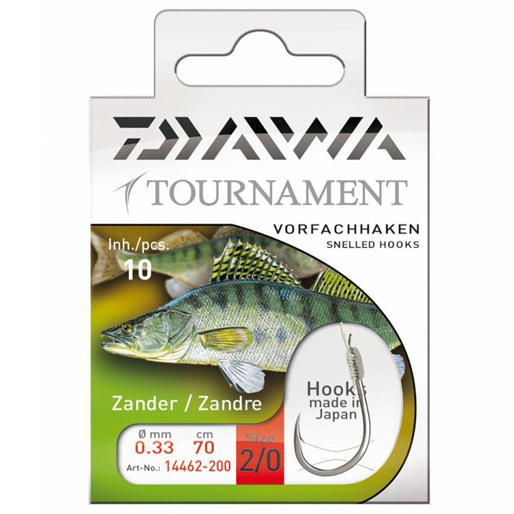 Mit den Tournament Haken bieten wir Ihnen ein komplettes Programm an Vorfachhaken aus Japan. Unser Augenmerk gilt hier ganz klar der Sicherung unserer hohen Qualitäts-Standards – jeder gebundene Haken wird individuell auf Zug-und Reißfestigkeit überprüft. Als Vorfachmaterial kommen nur hochwertige, japanische Materialien zur Verwendung. Ein echtes Premium-Produkt aus dem Hause DAIWA!