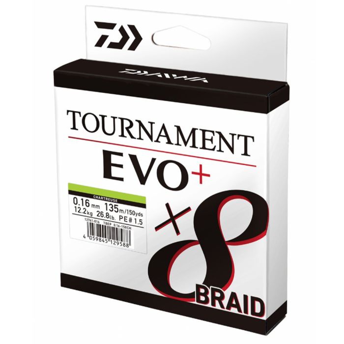 Die bekannte Tournament 8 Braid wurde in der EVO+ Ausführung noch weiter optimiert. Dabei wurde insbesondere die Oberflächenbeschichtung mit einem höheren Silikonanteil verbessert – die Schnur erzeugt somit noch weniger Reibungswiderstand im Wurf und optimiert die Wurfweite. Zusätzlich wird die Geräuschentwicklung in den Rutenringen weiter reduziert. Die Tournament X8 Braid EVO gehört technisch zu den weltweit besten geflochtenen Schnüren am Markt. Die Evo fächert auch bei häufigem Einsatz nicht auf und behält ihre runde Flechtung. Für die neuen Verpackungen haben wir zudem den Einsatz von Kunststoff um über 50% reduziert.