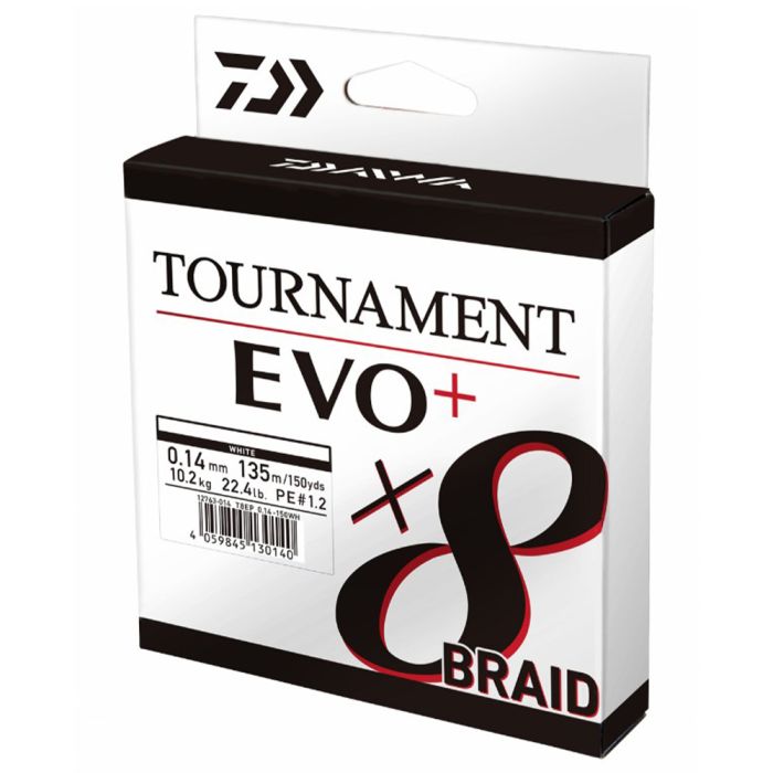 Die bekannte Tournament 8 Braid wurde in der EVO+ Ausführung noch weiter optimiert. Dabei wurde insbesondere die Oberflächenbeschichtung mit einem höheren Silikonanteil verbessert – die Schnur erzeugt somit noch weniger Reibungswiderstand im Wurf und optimiert die Wurfweite. Zusätzlich wird die Geräuschentwicklung in den Rutenringen weiter reduziert. Die Tournament X8 Braid EVO gehört technisch zu den weltweit besten geflochtenen Schnüren am Markt. Die Evo fächert auch bei häufigem Einsatz nicht auf und behält ihre runde Flechtung. Für die neuen Verpackungen haben wir zudem den Einsatz von Kunststoff um über 50% reduziert.