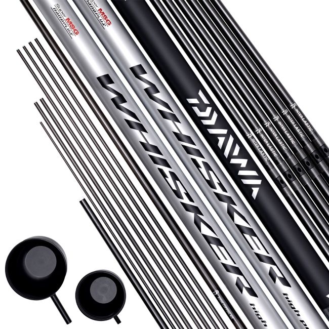 Die Daiwa Whisker ist sowohl mit einem Standard Daiwa Pole Cupping Set, wie auch einem vielseitigeren Daiwa Zoom Cupping Kit ausgestattet und somit für Performance designt und so gebaut, dass sie im Angesicht selbst der schwierigsten Bedingungen und an jedem Gewässer Erfolge verspricht. Dieses Silberne Stipprutenpaket wird sicher verstaut in einem robusten Pole Holdall geliefert, das bereit ist, aufgeladen und mit einer Karre zu jedem Angelplatz transportiert zu werden.