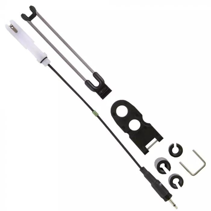 Es handelt sich um ein Komplett-Set – sie erhalten also neben dem Anzeiger selbst auch das CatFlex2-Anschlusskabel sowie einen zusätzlichen Tilt'N' Slide SlimCarb-Stabilisator und einen Satz von drei C-Slot-Schleppgewichten. Obwohl der Slimlite ein besonders leichtes Bobbin-System ist, wird dadurch sichergestellt, dass er auch bei Wind sicher eingesetzt werden kann.