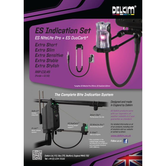 Extra kurz – extra dünn – extra sensibel – extra stabil – extra stylisch. Das ES Indication Set besteht aus zwei Produkten: dem ES NiteLite Pro und ES DuoCarb, entwickelt, um unter allen Bedingungen zusammen genutzt zu werden. Doch der NiteLite Pro kann, wenn erwünscht, immer noch als einzelner Bissanzeiger verwendet werden.
