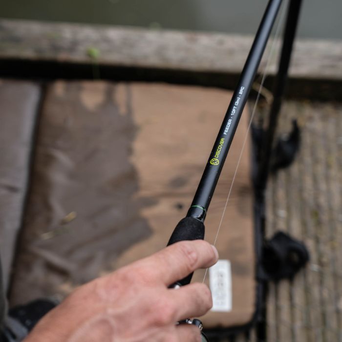 Die Discover Feeder-Kombination besteht aus einer 3-teiligen 10-Fuß-Kompositrute, die sich perfekt für alle Feeder-Angelsituationen in stehenden und fließenden Gewässern eignet. Die Rute verfügt außerdem über 2 austauschbare Köcherspitzen mit unterschiedlichen Wurfgewichten, so dass Sie eine breite Palette von Feedern und Bleien verwenden und selbst kleine Bisse von kleineren Fischen registrieren können. Die Rute ist mit einem komfortablen EVA-Griff und -Griffstück sowie einem Rollenhalter mit Schraubverschluss ausgestattet, in dem die Frontbremsrolle der Größe 30 untergebracht ist. Die Rolle ist mit hochwertiger monofiler Schnur vorgespannt, um Anfängern den Einstieg zu erleichtern.