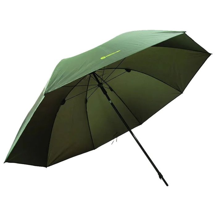 Der Discover 50-inch Umbrella bietet eine riesige 50 Zoll Abdeckung und verfügt über die traditionelle Form und Stil von Angel-Brollies, mit einem Stahldraht Rahmen, der in verschiedenen Positionen verwendet werden kann. In der normalen Position befindet sich die zentrale Stange in der Standardposition, wenn sie geöffnet ist. In der anderen Position kann der Schirm gekippt werden, um eine bessere Sicht und Manövrierfähigkeit beim Angeln zu gewährleisten.