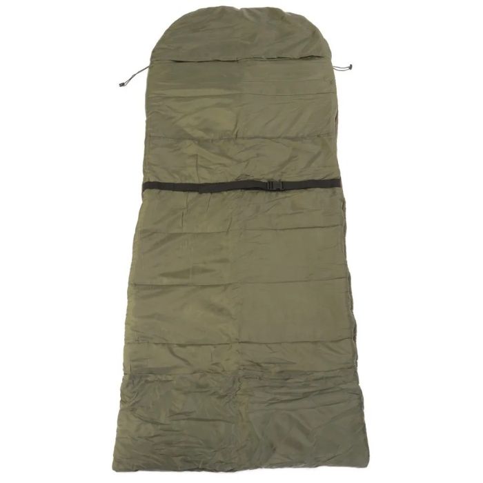Das Innenfutter aus Polyester ermöglicht eine einfache Bewegung im Schlafsack, während die elastische Kapuze am Kopfende zusätzlichen Komfort bietet. Ein mittlerer Riemen hilft, den Schlafsack sicher an einer Angelliege zu befestigen, um Verdrehungen während der Nacht zu verhindern - sobald der Bissanzeiger Alarm schlägt sind Sie also bereit!