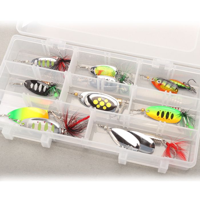 The Discover Spinner set offers 10 high quality spinners that can be used to target a wide range of species in both still and running water. The Discover Spinner pack features 10 spinners of different shapes, styles, sizes, and colours. This selection has been put together to make picking out the winning colour easy for the angler. The Discover Spinner set holds both small and large spinners to cover all species such as large Pike to smaller predators like perch and Chub.
