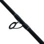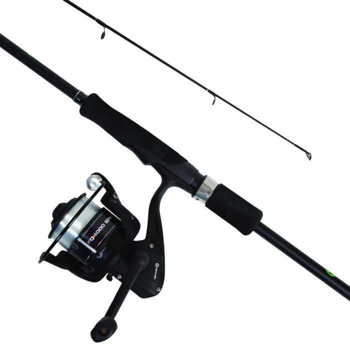 Die Rute hat einen verlängerten Vordergriff und ein kurzes Hinterteil. Diese Konfiguration ermöglicht es dem Angler, die Rute sicher zu greifen und leicht zu manövrieren. Dies hat viele Vorteile beim Köderfischen, um dem Köder Bewegung zu verleihen und die Fische zum Biss zu verleiten. Das Gehäuse und die Spule der Rolle sind aus leichtem Graphit und der Griff ist klappbar, um den Transport zu erleichtern. Die Schnur auf der Rolle hat die richtige Tragkraft für die Art des Angelns und die Größe der Rute, so dass Sie sofort angeln können. Schnappen Sie sich einfach eine Packung Köder und Sie sind bereit.