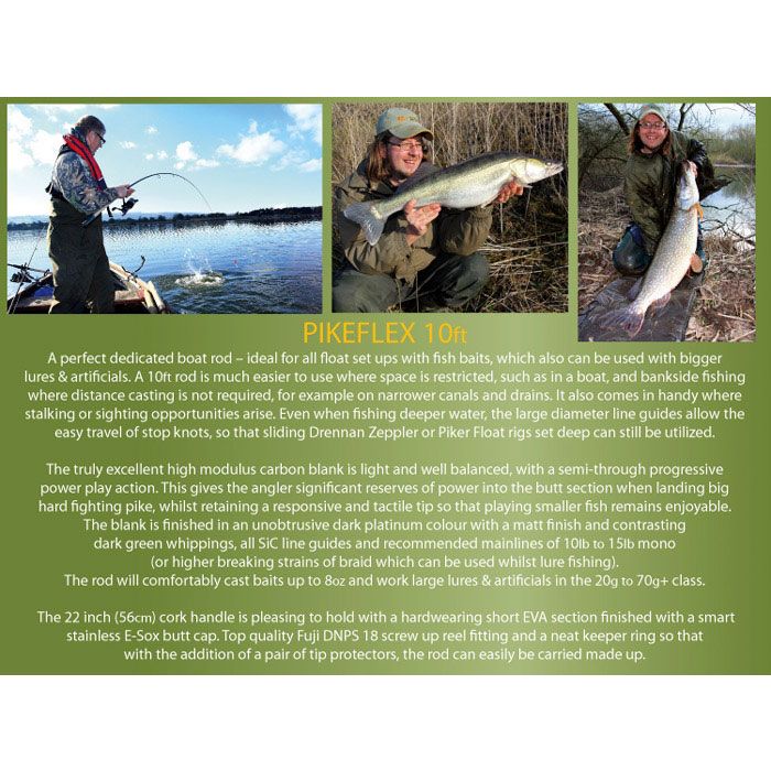 Drennan E Sox Pikeflex Rod 10ft 2.75lb is an ideal rod for using on a boat with a float set-up or with bigger lures and artificials. Being 10FT in length, it is ideal to use where space is restricted, such as on a boat or bankside fishing on narrower canals and drains, or where distance casting isn't required.