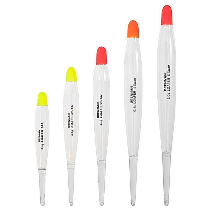Die aufgedruckten Gramm- Angaben sind nur ungefähre Werte. Wesentlich exakter ist die Swan-Shot-Angabe. Bei dem Swan-Shot handelt sich um ein Bleischrot mit ca. 1,9 Gramm (SSG). Je nach Zusammenstellung durch Drennan können diese Posen gelbe, rote oder orange Signal-Spitzen besitzen.