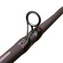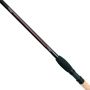Ein traditionelles zweiteiliges Outfit in einem atemberaubenden, dunkelroten Farbton, mit einem leichten, druckstabilen Karbon-Blank, und zwei Glas-Spitzen, der mit einer hochwertigen Halterungensöse, einschließlich ausgekleideten Führungen, einem festgeschraubten Rollenhalter und einem Duplon-Korkgriff ausgestattet ist.