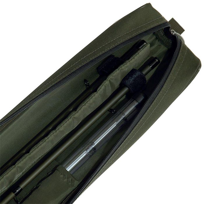 Die gepolsterte Trennwand im Inneren verhindert, dass die beiden Ruten beim Transport gegeneinander stoßen. Außerdem befinden sich auf der Innenseite eine Aufbewahrungstasche für Ersatz-Feederspitzen sowie zwei Taschen zur Aufbewahrung von Blei und Feeder. Der vollständig gepolsterte Innenraum sorgt dafür, dass Ihre Ruten und Extras sicher befestigt sind.