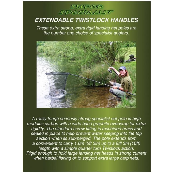 Dieser ausziehbare Super Specialist Kescherstab aus dem Angel-Netze-Spezialzubehör Sortiment von Drennan ist die perfekte Lösung für den spezialisierten Angler, der seine Reichweite über das Wasser ausdehnen möchte.