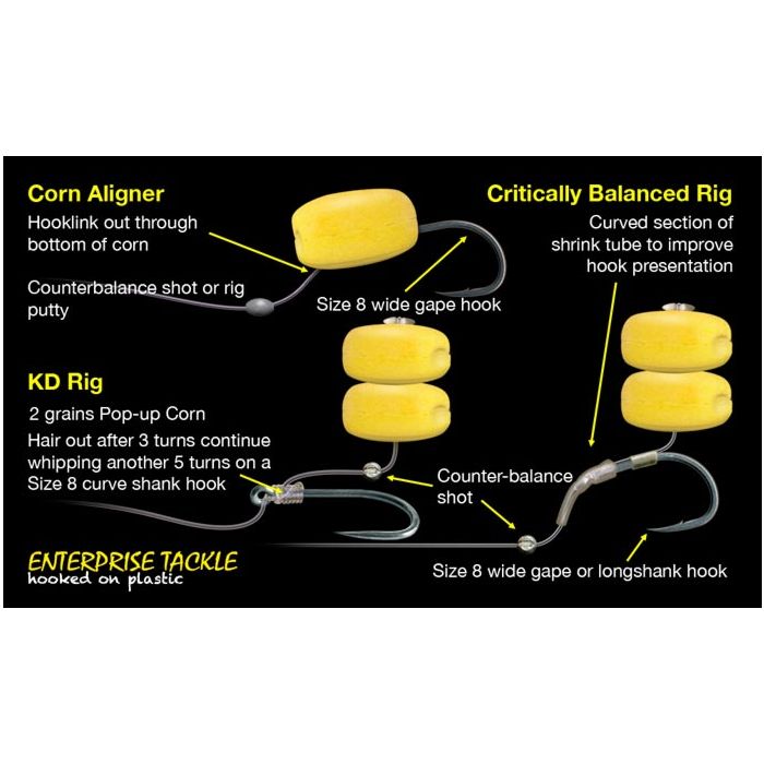 Dieser Köder ist für den Fang von Tausenden von großen Karpfen sowie von Exemplaren von Schleie, Brasse und Rotauge verantwortlich. Die mit unseren speziellen Lockstoffen imprägnierten Imitationskörner sind weich genug für das seitliche Einhaken, sind aber am effektivsten, wenn sie allein oder zusammen mit echten Maiskörnern auf Haarriggs gesteckt werden. Nutzen Sie den Auftrieb zu Ihrem Vorteil, um 'popups' oder ausbalancierte Hakenköder zu erzeugen (wobei Sie aber ein kleines Gegengewicht zum Rigg einsetzen, wenn es nötig ist).