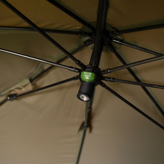 Der Lo-Pro Brolly zeichnet sich durch ein einzigartiges Design aus, bei dem 6 der 8 Rippen den Boden berühren, was bedeutet, dass in den meisten Situationen keine Sturmstangen erforderlich sind.