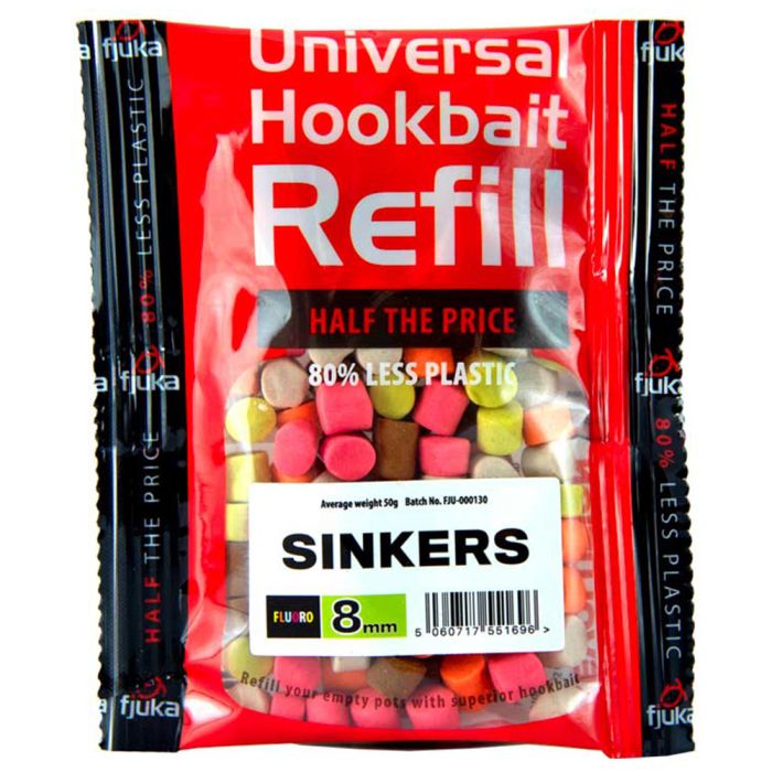 Die Hookable Fishing Sinker Refills von Fjuka sind Teil der neuen Universal Hookbait Refill Range. Dieses umfassende Sortiment umfasst eine Vielzahl von Köderoptionen für Ihre speziellen Angelbedürfnisse, wie z. B. Wafters, Pop-Ups, Drilled Pellets und Paste Wrapped Boilies. Alle diese Hakenköder sind mit dem Sensate Fish Accelerant ausgestattet und bieten Ihnen eine konsistente und leistungsstarke Köderauswahl.