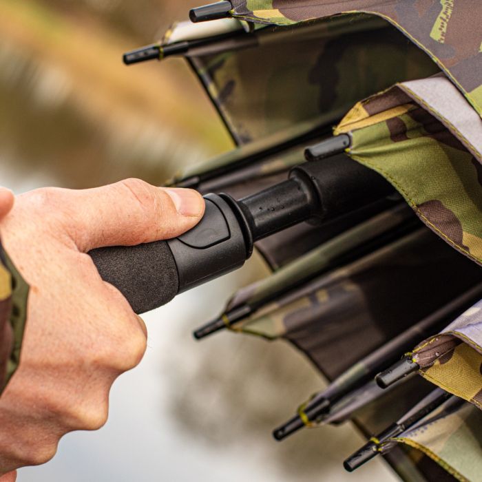 Der Fortis Recce Schirm, bietet maximalen Schutz bei der Erstjagd durch schlechtes Wetter. Obwohl er nur mit einer Lage DPM ausgestattet ist, ist er sehr praktisch und effektiv und das winddichte Schirmdach verhindert auch das Umkippen.