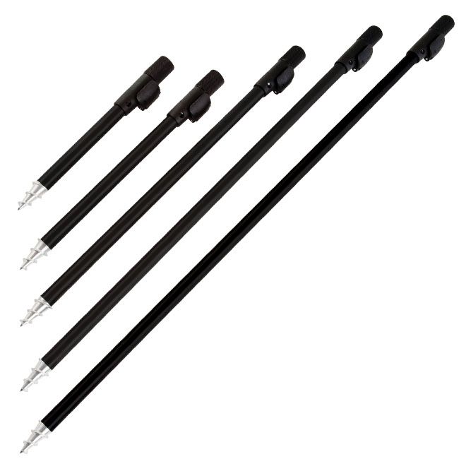 Die Black Label-Banksticks weisen jetzt die gleiche Cam-Lok-Verstellung auf, die sich bei früheren Fox-Banksticks als so beliebt erwiesen hat. Ein Drehschlüssel hilft um die Banksticks in harten Boden einzudrehen. Die Banksticks sind mit Powerpoint-Gewinde (oder Standardspitze) erhältlich und in der gleichen verstohlenen, schwarz eloxierten Ausführung wie der Rest der Black Label-Reihe.