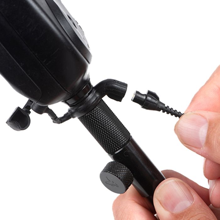 • Der Anschluss an den Bissanzeiger erfolgt über einen 2.5mm Stecker am Hockey Stick Adapter, dieser ist kompatibel mit den meisten Bissanzeigern mit 2,5mm Anschlüssen.