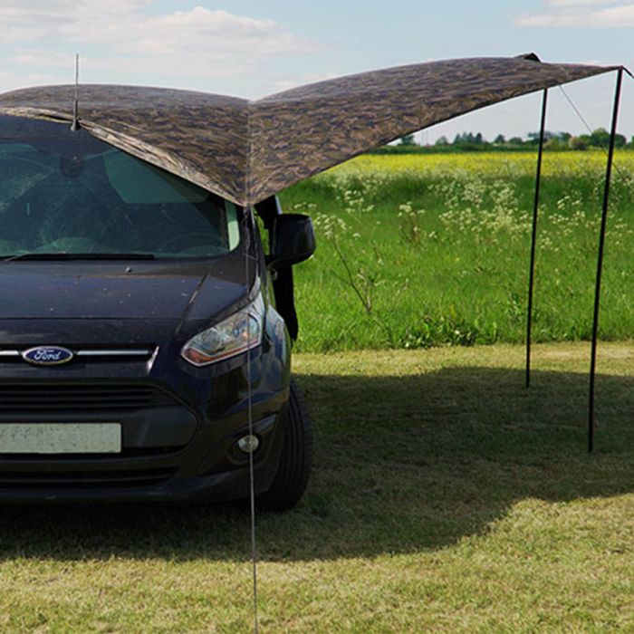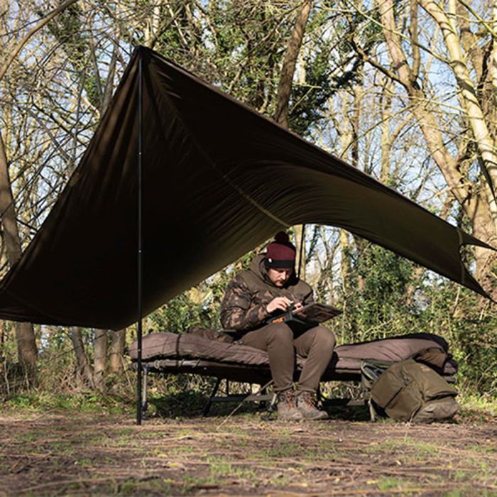 This Fox Camo Fishing Tarp is designed to provide professional-standard protection while you're out on the water. It is ideal for protecting bait and tackle, extending bivvies, cooktents and more, making sure you have reliable coverage of your fishing area at all times. The tarp features a Khaki laminate to reduce light penetration, which will ensure that you don't disrupt the delicate aquatic ecosystem in and around your fishing spot. It is made from 100% Polyester and measures 430x345x200cm, meaning it's light weight and easily transportable. It has reinforced corners with eyelets for storm cords, so you won't need to worry about inclement weather catching you off guard. Furthermore, the product comes supplied in a carry bag with pegs and storm cords so that you can quickly assemble it wherever required. In short, this Fox Camo Fishing Tarp provides maximum security when you want it for both rain and sun protection.