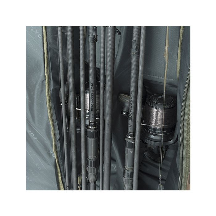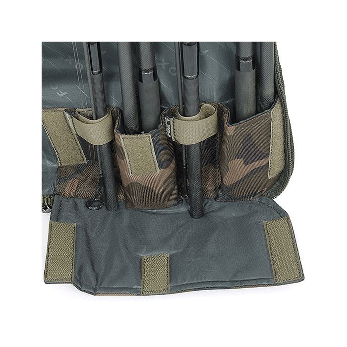 100% vorbehandeltes 500 Denier Polyester in der einzigartigen Fox Camo-Tarnfarbe. Nimmt vier fertig montierte 12ft-Ruten auf