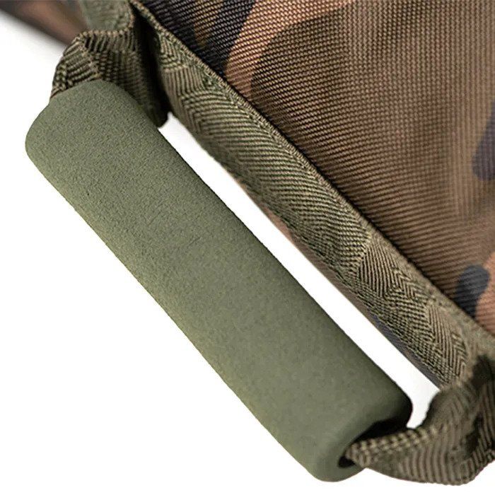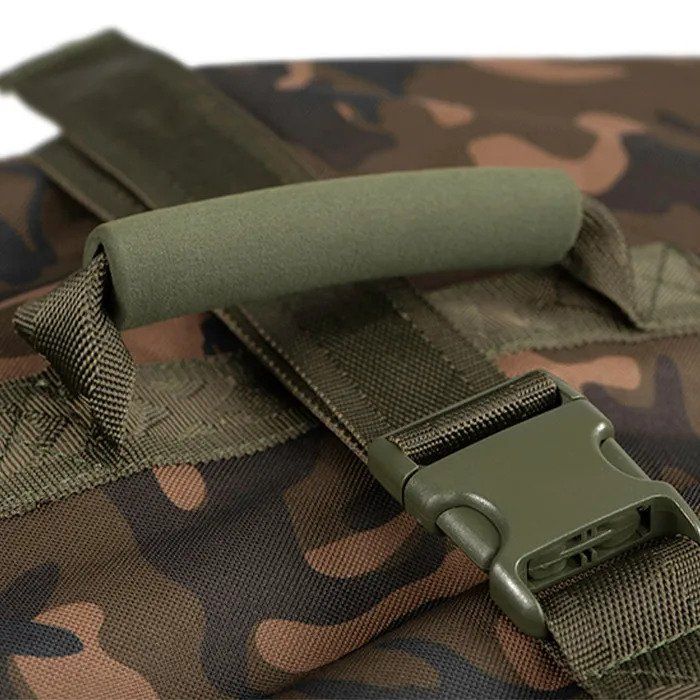 Fox Camolite Small Fishing Bed Bag, Looking for a tough and durable fishing bed bag that will perfectly protect your Duralite system or other compact bedchair? Then check out the Fox Camolite Small Fishing Bed Bag! This unique bag is made with a sturdy 500 denier polyester that has been treated to resist water and wear. It also features a Fox Camo Pattern that will help you blend in with your surroundings. The bag has double heavy duty zips for extra protection, as well as padded removable shoulder strap and stiffened EVA grab handles. Whether you're heading out for a day of fishing or taking your gear on a camping trip, this bed bag will keep everything safe and protected.