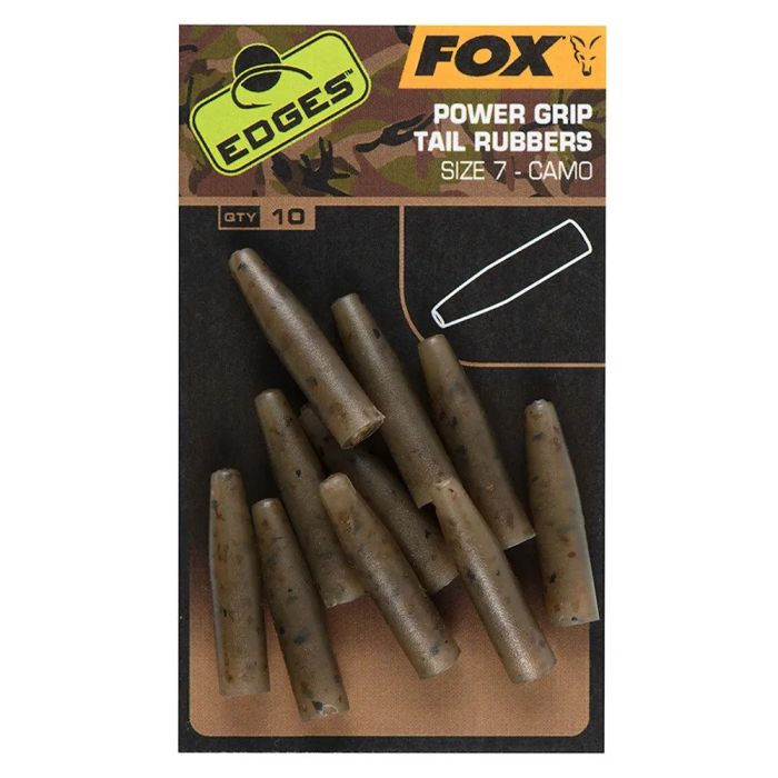 Die Fox Edges Camo Power Grip Tail Rubbers sind eine unverzichtbare Ergänzung für jeden Angler, besonders für diejenigen, die schwere Bleie bevorzugen.