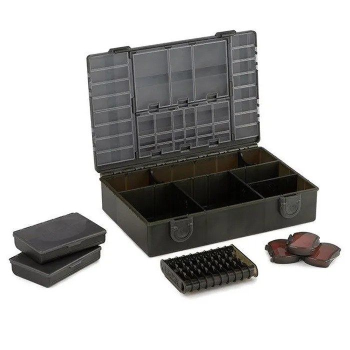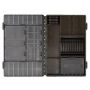 Die Tackleboxbasis wurde passend fr alle neuen Standard und XL Compartment Boxen, die Adjustable Compartment Boxen, die Hook Boxen sowie die genialen Leader Racks in den Gren Standard und XL konstruiert. Die Box ist mit 3 langen, 2 kurzen und einem mittellangen Trennelement ausgestattet, welche herausnehmbar sind und somit das Basisteil ganz individuell nach Wunsch aufteilen. Die Aufteilung der Trennwnde ist so durchdacht angelegt, dass ein Maximum an Platz genutzt wird und keine der Einsatzboxen darin durch verschwendeten Platz herumwackeln knnen und smtliche Kleinteile darin optimal und effizient geschtzt sind. Smtliche Kleinteile angefangen von Rigtools ber Standard Vorfachspulen bis hin zu greren Leaderspulen passen perfekt in diese Box.