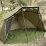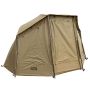 Die Wahlmöglichkeit des Türbereichs in entweder Klarsicht oder geschlossen, ermöglicht es ihnen, ihr Bivvy individuell an ihre Wünsche und an die Gegebenheiten vor Ort anzupassen. Durch die Öffnungsmöglichkeit im Briefkastenstyl können sie auch beim schlimmsten Wetter den Blick nach Außen erhalten und die beiden an der Front angebrachten Rod Straps sichern ihre Ruten zuverlässig, während sie die Auszeit am Wasser genießen.