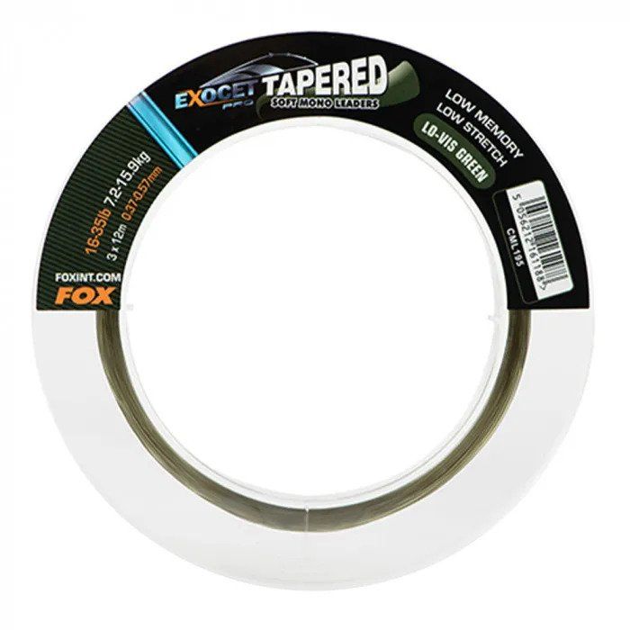 Fox Exocet Pro Tapered Fishing Leaders, Looking for a top-quality tapered fishing leader? Check out the Fox Exocet Pro Tapered Fishing Leaders! These leaders are made from the improved Exocet Pro Mono in low vis green, and they're perfect for anglers who prefer a mono leader over a braided one. They're also great for venues where braided line/leaders are banned. Order your Fox Exocet Pro Tapered Fishing Leaders today and enjoy superior quality and performance on your next fishing trip!