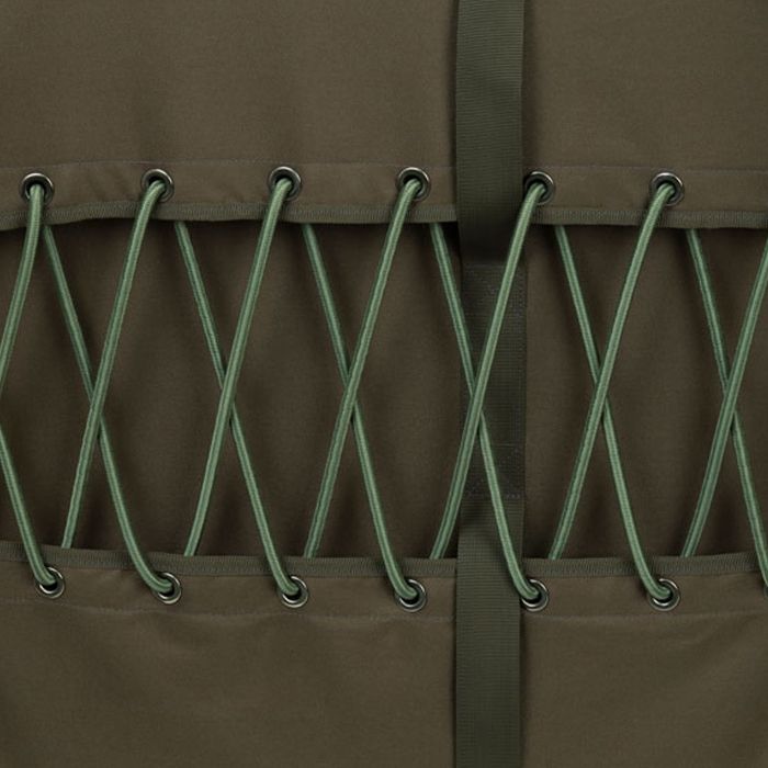 The mattress is 50mm deep and made from high density foam with hollowfill to give that perfect combination of softness yet firmness. This is topped off by a firmer foam at the mattress's outer perimeter which helps reduce compression on the bed frame. Dream in peace with the Fox Flatliner 8 Leg 3 Season Sleep System - weatherproof protection with unbeatable comfort!