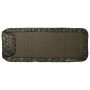 Die durchgehende 'Fold Over' Rückenstütz-Technologie gewährleistet eine komplett straffe Matratze über die gesamte Länge. Die 3D Netz-Obermatratze mit Polyesterbasis ist nicht nur leicht, sondern verbessert auch die Durchlüftung und bietet somit Feuchtigkeit vor. Der Schaumstoff mit einer Hohlfaser-Oberfläche macht die Matratze fest, aber gleichzeitig angenehm weich. Der Matratzenrand in der einzigartigen Fox Camo Tarnfarbe und der feste Schaumstoff am Rand verhindern ein Durchdrücken des Liegerahmens, und die 8-Bein-Konstruktion mit Doppel-Klappgelenken sorgt für zusätzliche Stabilität.