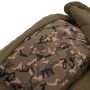 Mattress is covered with a camo peach skin fabric perimeter and head area with a