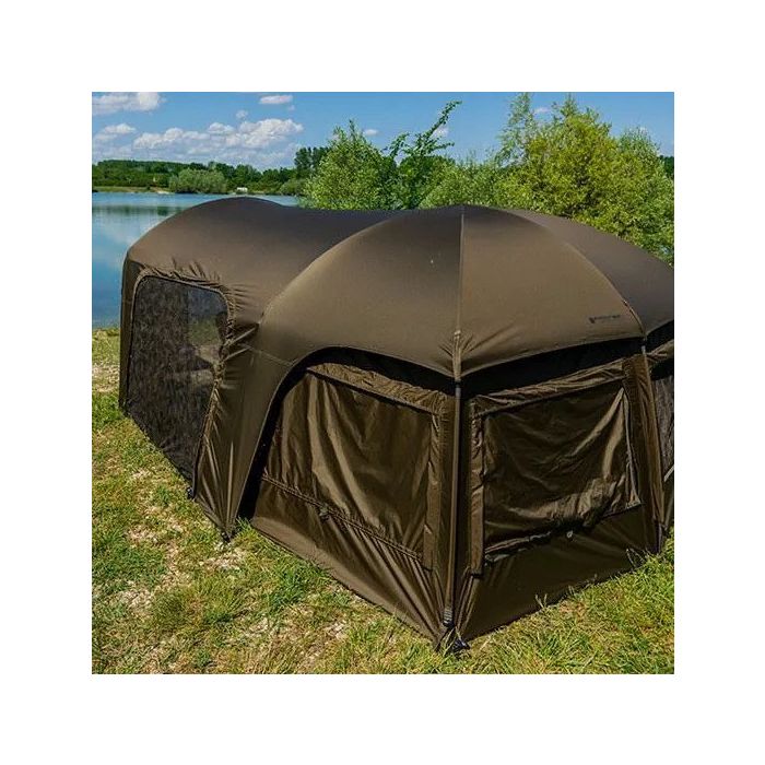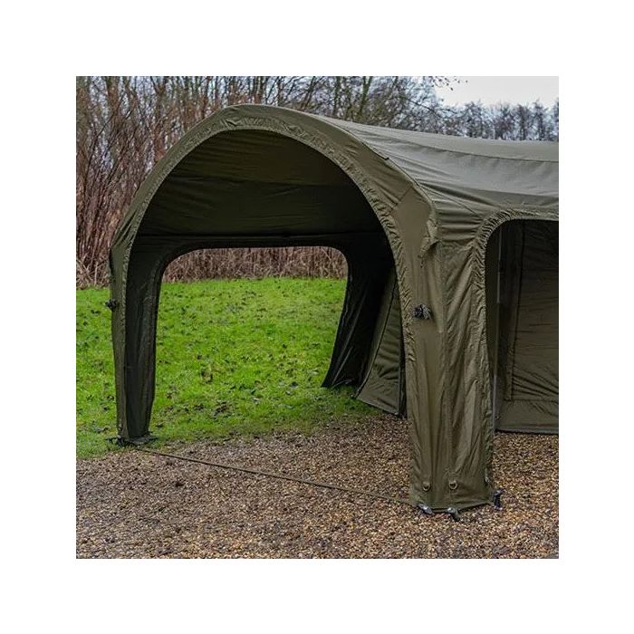 Die Deluxe-Verlängerung aus 100% Polyester bietet eine 1,5 m zusätzliche Abdeckung. Verringert die Kondensation. Erhöht den Schatten bei heißem Wetter, reduziert die Innentemperatur und schafft einen schattigen Bereich an der Vorderseite des Bivvy.
