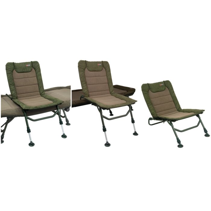 Dieser multifunktionale neue FX Combo Stuhl wird sicher ein Klassiker bei den Karpfenanglern. Dank seines cleveren Designs kann der Stuhl auf einer Liege (wie ein traditioneller Liegen-Buddy), an der Seite einer Liege, (sodass sie vor ihrem Zelt darauf sitzen können) oder als freistehender, niedriger Stuhl genutzt werden.
