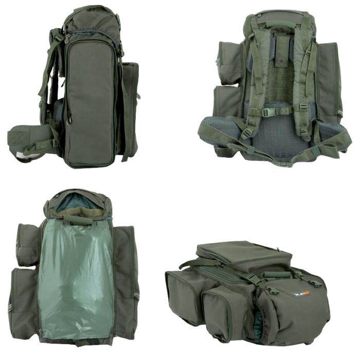 Novel design features such as enhanced degrees of zip opening, stepped pocket positioning, strategically placed EVA grab handles and zip down flat back allow this durable and capacious rucksack to be accessed and used both upright as a standard rucksack or flat on its back as a barrow-style bag.