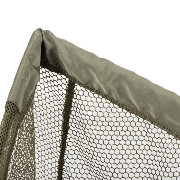 Der japanische Schrumpfschlauch-Griff, der schwarze Aluminium Spreizblock und die hochmoduligen Carbonbügel (zusammen mit der Power-Stab mit vergrößertem Durchmesser) verhindern, das sich das Netz bei der Bewegung durch das Wasser zu stark biegt. Der Kescher hat ein khakifarbenes tiefes Netz mit verstärkten Gewebeecken, und ist auch als Ersatz separat erhältlich.
