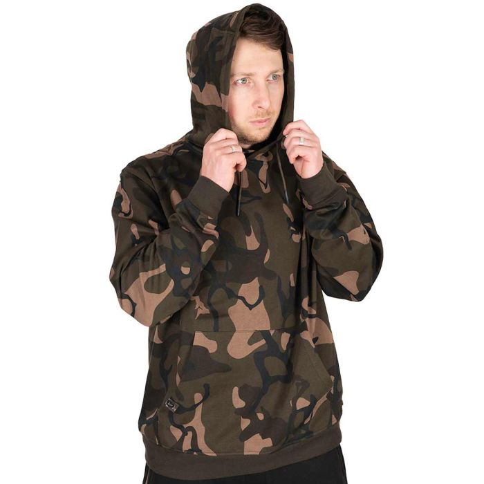 Fox Lightweight Camo Pullover Hoodie, Unique Fox camo pullover hoodie. Drawcord hood, ribbed cuffs and hem. Front pouch pocket. 60% Cotton, 40% Polyester, 240gsm.
