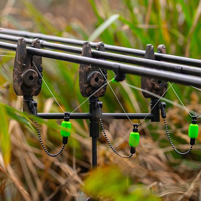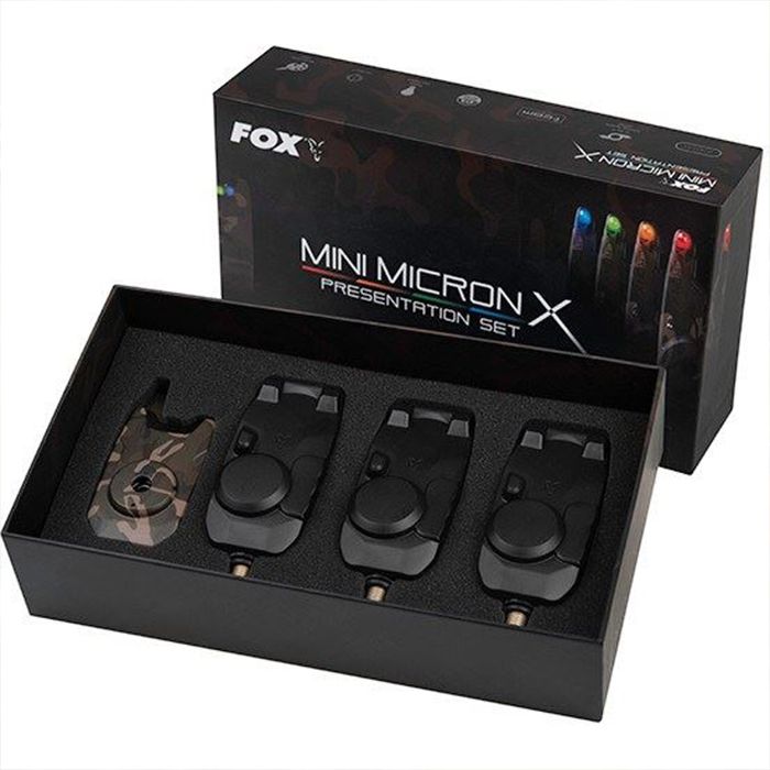 Fox's Mini Micron X fishing presentation set is a great choice for any specialist angler. It contains four-alarm heads with multicoloured LED lights that you can change to one of four different high-vis colours, as well drop back indication and low battery warnings when needed.