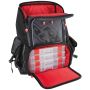Loaded with tackle boxes. Heavy duty zips. 3D Padded shoulder straps. EVA grab handle. Mesh side pocket. Elasticated mat straps. Scuff feet. Reflective trim. Size: 50 x 39 x 26cm. Ripstop fabric. Includes: 4x Medium Shallow Tackle Boxes. Outer Main Fabric: 100% Polyester. Lining: 100% Polyester. Padding/Filling: 55% Polyurethane, 45% Polyethylene. Base: 100% PVC.