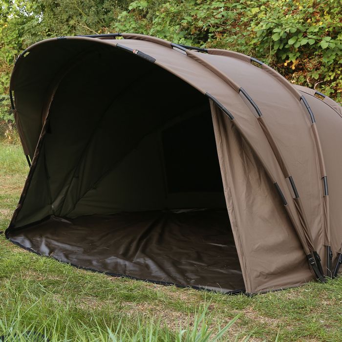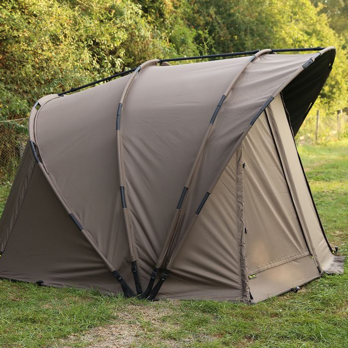 Er hat außerdem eine gute Größe. Eine Höhe von 155 cm, da können Sie in diesem Bivvy einiger maßen gut stehen. Eine Länge von 275 cm bedeutet, dass Sie den Bedchair bequem in Längsrichtung im Bivvy unterbringen können, damit Sie trotzdem eimerweise Platz für alle anderen wichtigen Ausrüstungsgegenstände und Gepäckstücke haben. Das Bivvy ist 230 cm breit, und ist somit perfekt für ein paar Besucher oder Freunde. Das Bivvy hat ein Spreizrippendesign, das dazu beiträgt, den Innenraum zu maximieren, sowie eine flache Rückseite, die es Ihnen ermöglicht, Ihr Gepäck weit hinten hin zu schieben, um den Raum wirklich zu nutzen.