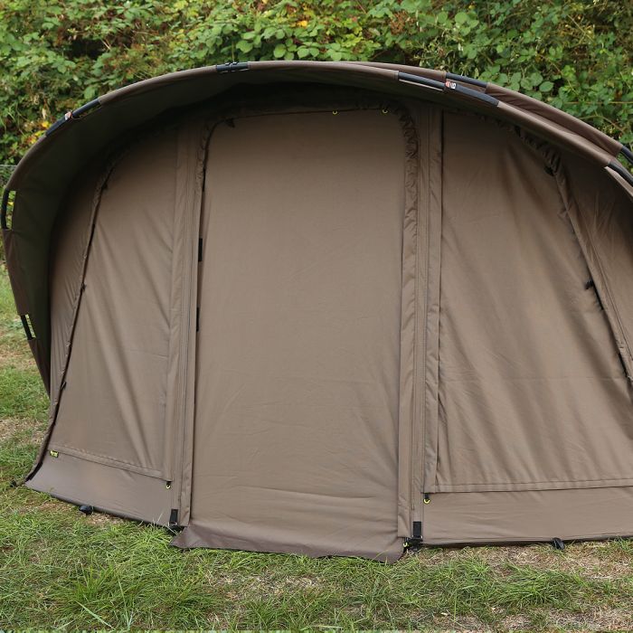 Dies ist ein unglaublich vielseitiges Bivvy und es wird mit einer Moskitonetz-Innenkapsel für all Ihre Bedürfnisse beim Angeln im Sommer geliefert. Dieses Moskitonetz gehört nicht zur Standardausstattung, obwohl es in einem Kombinationspaket mit dem Hauptbivvy erhältlich ist (siehe Ausstattung). Das bedeutet, dass Sie in das Bivvy als Einzelstück investieren können, bevor Sie die Innenkapsel velleicht späteren dazu kaufen, oder Sie können einfach beide zusammen kaufen. Dieses Moskitonetz (mit entfernbarer Bodenplane) lässt sich einfach einhängen. Ein Überwurf kann auch dazu gekauft werden, denn es verwandelt das Bivvy in ein Doppelschichtiges Zelt, und Sie haben auch noch eine Veranda dazu, die Ihnen noch mehr Platz bietet.