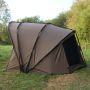 Die Struktur des Fox Retreat+ Zwei Mann ist tadellos. Er wird besitzt nicht nur feste Aluminiumstangen, sondern auch mehrere Rahmenstützen; verstellbare Spanngurte unterstützen die Struktur zusätzlich. Es ist wirklich das ideale Ganzjahres-Bivvy für den engagierten Angler, der regelmäßig längere Sessions genießt und der gerne eine Menge Ausrüstung mitnimmt.