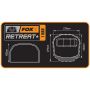 Das erste, was am Fox Retreat+ One Man zu bemerken ist, ist sein unglaublich hohes Konstruktionsniveau. Das aus Ven-Tec-Ripstop-Material gefertigte Bivvy ist hält einen Wasserdruck von bis zu 20.000 mm, bevor das Wasser durchläuft. Da werden Sie uns sicher zustimmen, das das mehr als genug ist, um selbst den heftigsten sintflutartigen Regenfälle zu bewältigen. Die Sturmspitze bietet auch noch extra Schutz denn sie verhindert, dass der Regen direkt auf die Vorderseite Ihres Bivvys trifft. Es ist außerdem mit Seiten- und Rückwänden, und Frontfenster und Türeinsätzen aus Moskitonetz ausgestattet, denn damit ist es ideal für das Angeln im Sommer, da Sie selbst an den heißesten und schwülsten Tagen eine große Luftmenge genießen können.