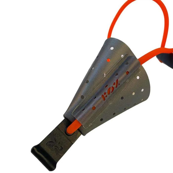 Breite Gummizug-Befestigungen des Fox Katapults gewährleisten einen verbesserten Gummifluss durch den Rahmen, was Verwicklungen minimiert und ein reibungsloses Füttern ermöglicht. Der Korb, der nicht auffasert, verfügt über einen rutschfesten Griff für eine problemlose Handhabung auch mit nassen Händen.